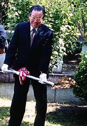 | 王仁塚を訪れ山桃の苗木を 植樹する金鍾泌首相 |