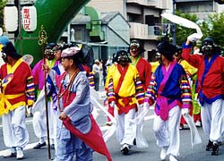 民団東淀川支部(韓英一支団長)は9月19日に開かれた「第25回東淀川区民まつり」に伝統的民族衣装を身につけてパレードに参加した。