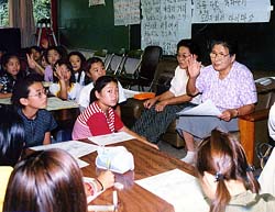 「ふれあい学習」は10年以上続く桜本小独自の教育的取り組み。異年齢集団で一つのグループを構成、興味ある課題について地域の人々から体験的に学んできた。今年からはこの取り組みをさらに進め、日本文部省の「総合的な学習」に準じて、自ら選んだ課題について疑問点を調べたり、発表するなど、児童による主体的、創造的な学習に重点を置くようになった。