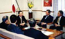 額賀福志郎官房副長官との面談には、民団茨城県本部の李信吉団長、金政雄副団長、金大顕執行委員も同行した。辛団長は「自自公の連立で地方参政権問題が相当進んだ。1900年代の実現を」とたたみかけると、額賀官房副長官は「来年の通常国会までに結論が出るよう全力を尽くす」と語った。