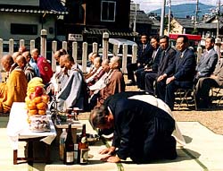 | | 耳塚に向かって例をささげる同胞 |