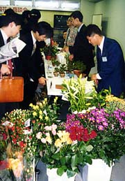 今回、韓国から参加した生産業者は12社。主な取り扱い品目はバラ、菊、百合、蘭などの切り花類からサボテン、盆栽など多種多様。ソウル市内の総合貿易会社、大洋花弁(ソウル市瑞草区)ではサツキの一種、盆栽を思い起こさせる可憐な「角葉珍山」をこれからの主力商品にと出品した。業者も関心を示しており、今後の輸出に自信を深めていた。