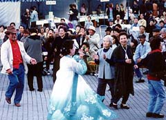 | | 韓国のリズムに合わせて踊り出す同胞と市民ら |