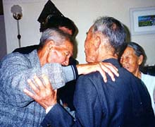 | 61年ぶりに兄(左) との再会を喜ぶ林さん。 |