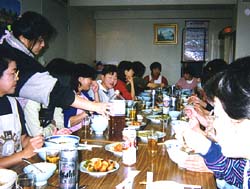 | | 手作りの韓国料理を味わう市民ら |