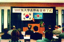 長野県本部の鄭進団長は「講座に対する期待と関心ではち切れんばかりの気迫があった。21世紀を前に新たな民族性と幅広い知識で在日韓国人としての自覚を継承して欲しい」と修了生を激励した。