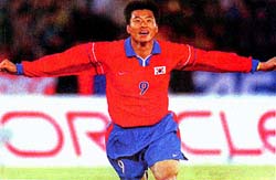 | ブラジル戦で歴史的な決勝ゴールを決め、 ヒーローとなった金度勲選手 |