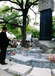 公園内に移設された慰霊碑には、8月6日に、小渕恵三首相も訪れ、献花した。