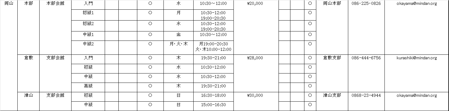 受講料などに関しては変更する場合がありますので、各地へお問い合せ下さい。