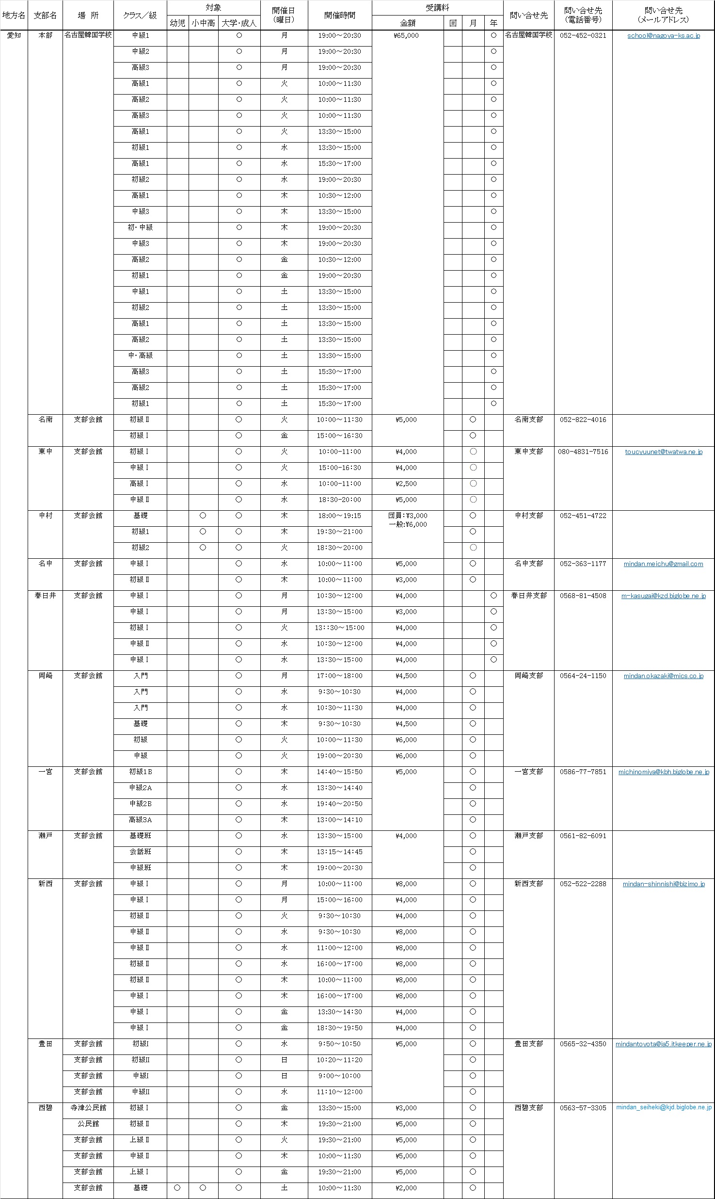 2024年度 各地の韓国語教室<中北地区>