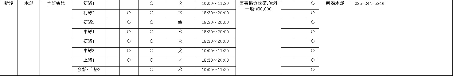 受講料などに関しては変更する場合がありますので、各地へお問い合せ下さい。