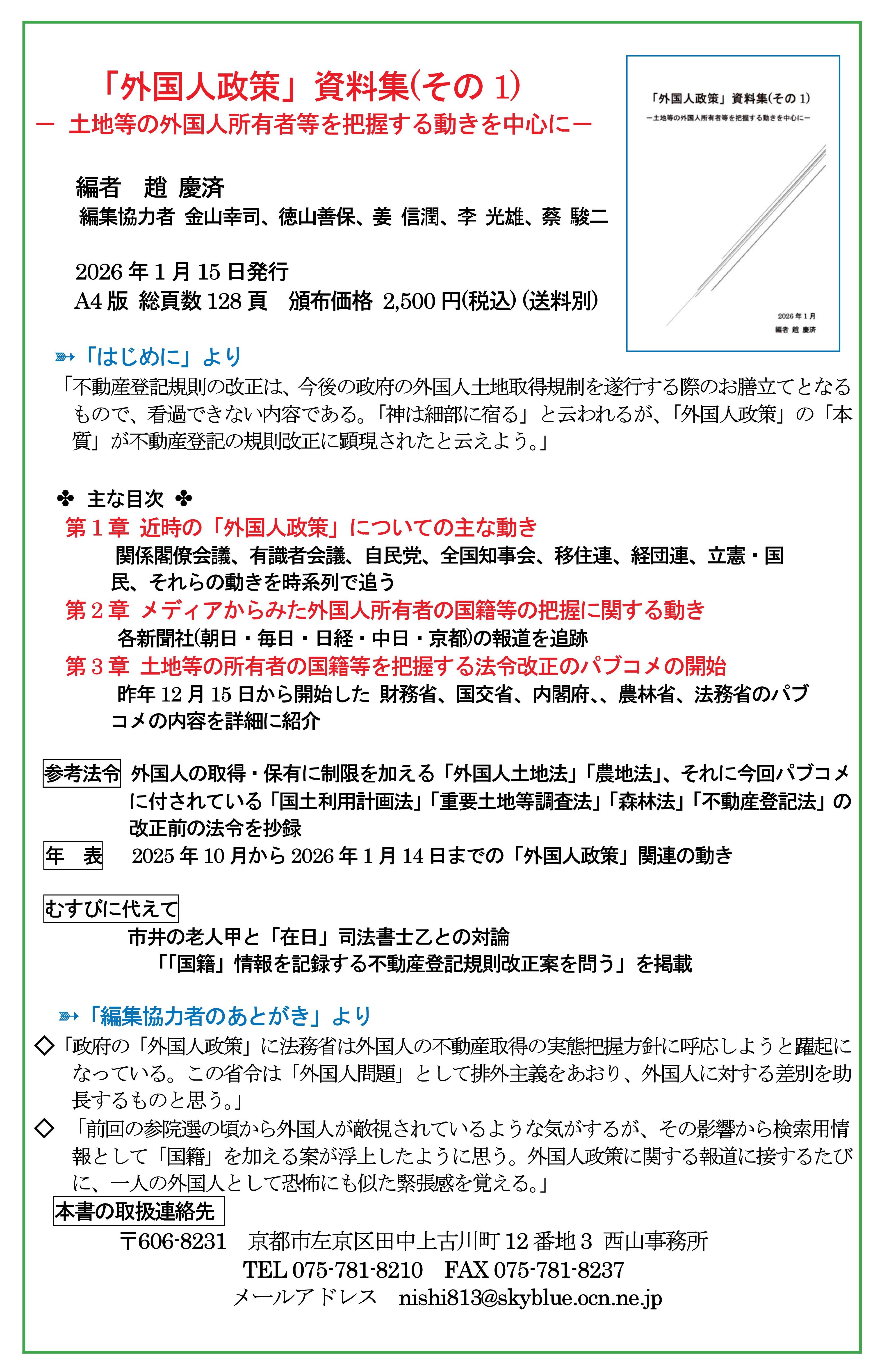 「外国人政策」資料集 発刊のご案内