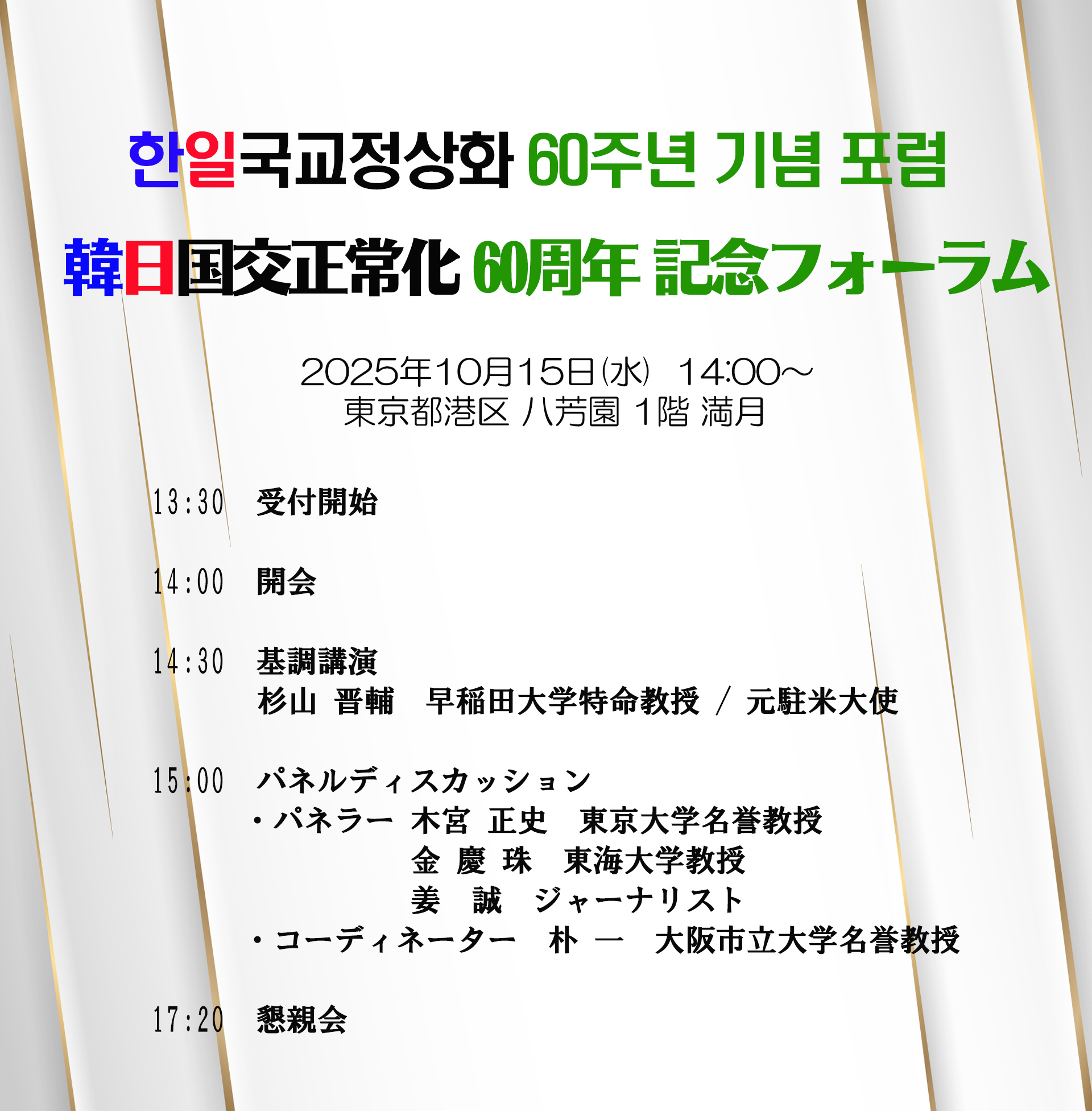 | 9 | 韓日国交正常化 60周年 記念フォーラム 한일국교정상화 60주년 기념... | 25-10-07 |