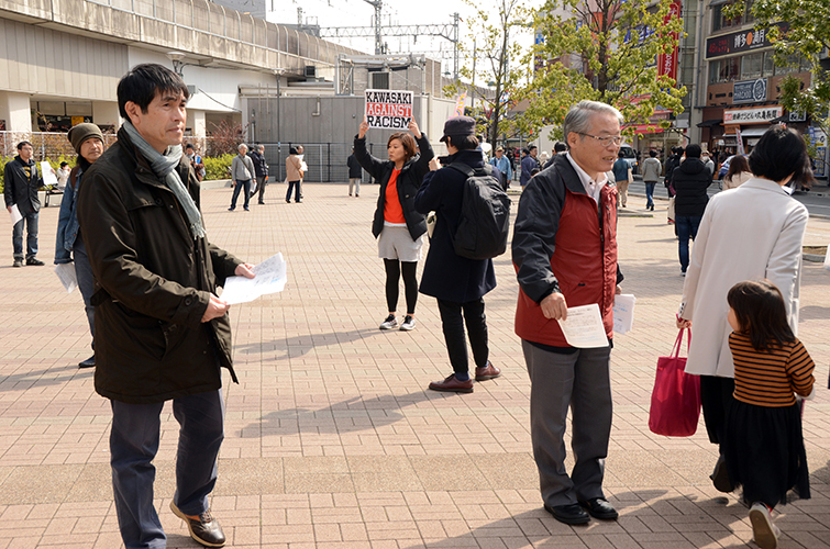 【神奈川】排外主義的な極右政治団体「日本第一党」の最高顧問、瀬戸弘幸氏による時局講演会が開かれた25日、市民団体「『ヘイトスピーチを許さない』かわさき市民ネットワーク」は会場の総合自治会館から約5分ほど離れた東急線武蔵小杉駅前でビラをまき、抗議の意思表示を行った。 ビラには「ヘイトスピーチ根絶のための実効性のある施策の実施」と「人種...