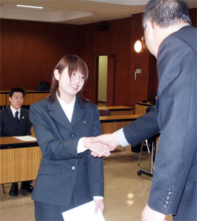「がんばります」あすか信組が入組式(05.4.6)