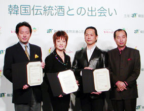 なお、韓国食品に理解の深い女優の夏樹陽子、大鼓奏者の大倉正之助、俳優の辰巳琢郎の3氏が韓国酒親善大使に任命された。