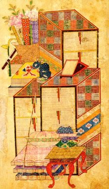 出展は青花桃花文面取瓶(18世紀)、竹貼三層四方卓子(19世紀)、冊架図(19世紀)など約60点。