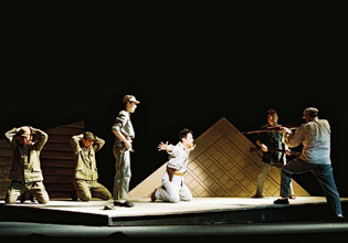 舞台では俳優たちが、子どもを声で演じるコロス(古代ギリシャ劇の合唱隊)を用いて時間の経過を表現した。また朝鮮の抗日分子(パルチザン)の隊長になった金俊明が、満州・朝鮮の国境近くで再会した北森を命がけで助け、昔の恩返しをするという場面では、朝鮮人役の俳優たちが朝鮮語で演じることで説得力をもたせている。山口さんは「人間と歴史の歩みを知って、戦争というものを身近なものとしてとらえてほしい」と話す。