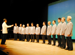 在日同胞男性で構成されるコーラスグループの「サナイ合唱団」(文友平団長)。大阪市生野区の通称、御幸森コリアタウンの一角にある生野西朝鮮人会館を拠点に2001年から、毎週1回の練習を積み重ねてきた。歌うことが何よりも好きだと話す団員たち。2日には、在日本朝鮮文学芸術家同盟・大阪支部演劇口演部主催の民族教育チャリティー公演に友情出演し、美しいハーモニーを披露した。