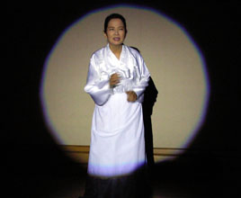 [ 在日3代史に関東大震災を盛り込んだ一人芝居を演じる宋富子さん ]