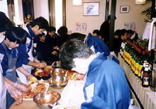 【静岡】静岡大付属浜松中学の生徒30人が2月21日、婦人会浜松支部常任顧問経営の焼肉店「海平屋」でキムチづくりと韓国料理試食に挑んだ。