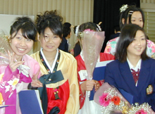 在校生と父母が拍手で祝福 京都韓学卒業式(03.03.12)