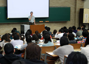 【神奈川】横浜国立大学で9日から始まった教養教育科目の授業の一つ「貧困・差別・抑圧の歴史と現在」の第1回に70年代初頭の日立就職差別闘争の当事者、朴鐘碩さん(横浜市戸塚区の日立製作所ソフトウエア事業部勤務)がゲスト講師として招かれ、当時の記録ビデオも上映された。1年生を中心に300人以上が大教室を埋め、立ち見が出るほどだった。