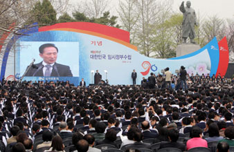 李明博大統領は記念演説で「臨時政府は『大韓民国』の国号を作っただけでなく、民主共和制の枠を作り光復(解放)以後の建国の基礎を築いた」と強調、「臨時政府は大韓民国のルーツであり、精神的な土台と言える」と述べた。