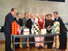 [ 4月に80歳の誕生日を迎えた金富権さんがケーキカット ]
