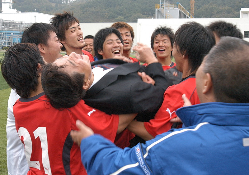 | 南照男在日同胞選手団長を胴上げする在日同胞イレブン |