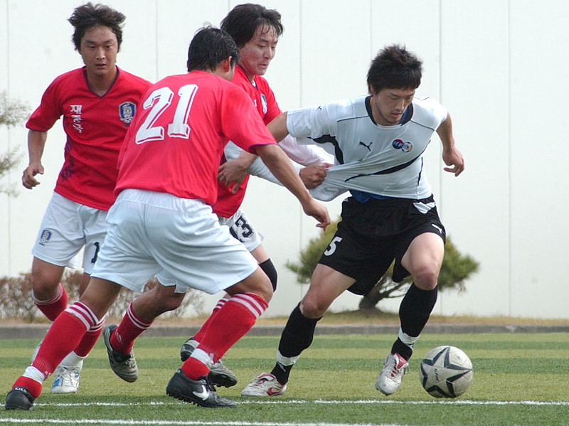 | ゴルフの大活躍に負けなかったのがサッカーだ。人気が最も高く、獲得ポイントも高い。 10カ国同胞がエントリーしたサッカーは今年から3組に分かれた予選リーグが導入された。在日は2年前に決勝、昨年準決勝で辛勝した強豪の在豪州同胞が同組。 組1位だけに与えられる決勝トーナメントへの道とあって、絶対負けられない戦いとなった。 初戦の豪州には苦戦しながらも1‐0と撃破した。これで気を楽にした在日は2戦目の香港を9‐1と余裕勝ちし決勝トーナメントへ。準決勝は在中国同胞を5‐0と圧倒、決勝戦は昨年と同一カードの在米国同胞となった。 昨年PK戦までもつれ込んだ相手だけに今年も厳しい戦いが予想されたが、細かく早いパス回しと左右からの速攻で米国同胞を翻弄し前半に1点、後半に2点をたたき込み、結局3‐1の完勝で3連覇を果たした。 |