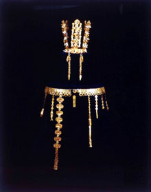 出展品は「金冠」、勾玉や金板、刀子など13個の腰佩(ようはい)などが下がる「金製 帯」、「垂飾付耳飾」、シベリアとの関係が指摘されている「金製冠飾」、「装飾宝剣」など、いずれも当時の高度な金工技術と装飾文化をしのばせるものばかり。会期は7月10日から8月29日まで。