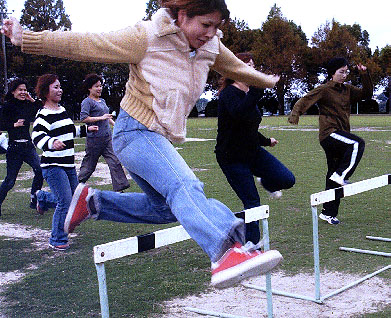[ 障害物競走でも元気いっぱい(熊本「体育祭」) ]