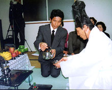【京都】民団京都・丹波支部(李海根支団長)は16日、団員のための民族教育の一環として同支部会館で伝統チェサ(祭祀)を披露した。同支部としては初めての試み。この日の模様は同支部がビデオに収録、管内の全団員宅に配布する計画だ。