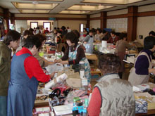この日の収益20万円余りは、婦人会東京本部の文化作品展示会に出品するための材料費にあてられる。