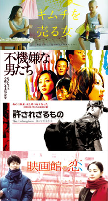 翌28日からは、「キムチを売る女」(チャン・リュル監督・脚本)、「不機嫌な男たち」(ミン・ビョングク監督)、「許されざるもの」(ユン・ジョンビン監督)、「映画館の恋」(ホン・サンス監督)を4月20日まで12週間(各3週ずつ)上映する。