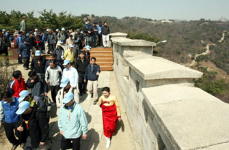 開放されたのは、彰義門から臥竜公園(紅蓮寺)を結ぶ北岳山ソウル城郭4・3㌔全区間で、一帯の観光資源化に向け、案内ガイドや城郭解説者を配置するほか、守門軍交代儀式の再現なども行う。ただ、当面は月曜日を除く毎日午前10時から17時まで、1時間ごとに100人前後の団体観覧を行う形での制限を実施、段階的に開放の幅を広げていくという。