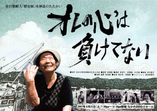 在日韓国人の元「慰安婦」被害者で97年度多田謡子反権力人権賞受賞者の宋神道さんの法廷闘争を記録したドキュメンタリー映画「オレの心は負けていない」(93分、安海龍監督)が完成した。8月25日、午後7時から東京のJR中野駅南口なかのZERO小ホールで第1回上映会を開く。