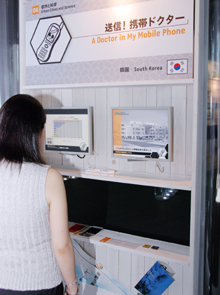 ブロードバンドの普及率がトップクラスの韓国からは、携帯電話を利用して血液検査が可能な「携帯ドクター」が出展され、来場者の注目を集めている。