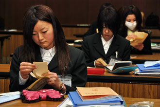 お札の数え方から 各民族金融機関で新入職員の研修会