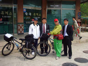 4月25日、マウンテンバイクを持って大阪南港からフェリーに乗船。釜山から洛東江を越え、慶尚南道昌原市に朴さんの父親の生家を訪ね、4月29日に大阪港に戻った。