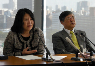 判決言い渡しを受けて大阪弁護士会館会議室で記者会見に臨んだ原告の高さんは、涙ながらに悔しい胸の内を述べ、最後まで闘い続ける決意を露わにした。