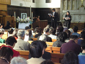 立教大学チャプレン、大韓聖公会司祭の柳時京さんは、「これまでの韓日は、にらみ合ってきた100年だった。これからは、お互い心通じ合う新しい世界を作る100年にしてほしい」と呼びかけた。