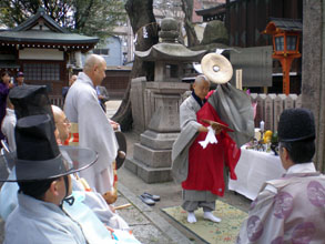 【大阪】在日本韓民族仏教徒総連合会(金光徳会長、宝厳寺住職)は3日、生野区の御幸森天神宮で、日本に論語と千字文を伝えたとされる王仁博士への報恩感謝の礼を捧げた。式は同宮内に建立された王仁博士の難波津歌碑前で行われた。碑の建立に寄与した古代ロマン塾(姜信英代表)との共催。