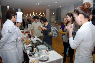 全羅道コーナーでは、ナツメやシナモン、生姜などを加えた全州マッコリの試飲が来場者の人気を集めていた。案内役を務めたのは全羅道で開かれた「韓食広報大使選抜調理競技大会」で選ばれた大学生ペア。韓国通を自称する若い女性グループは、「こんな味があったなんて、いままで見逃していた」と笑顔を見せていた。