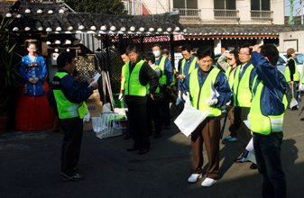 毎月第2火曜日の活動日には、民団新宿支部、在日韓国人連合会(韓人会)、基督教会の牧師で構成するホーリークラブなどから毎回、約40人が参加。大久保や職安通り周辺を約40分かけて清掃している。グリーンのユニホームは地元ですっかり定着した。活動が始まると、商店主からお茶や水の差し入れを受ける光景も珍しくなくなった。