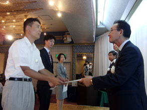 【大阪】第4期東アジア経営塾(韓商近畿地区協議会など主催)の修了式が24日、大阪市内のホテルで開かれ、起業志向者や若手商工人ら塾生25人に修了証を授与した。