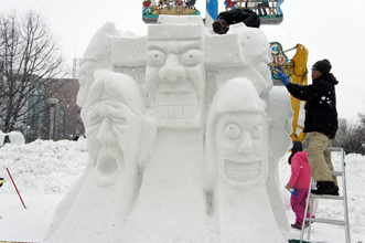 【北海道】さっぽろ雪まつりが開催された大通会場(札幌市中央区)で、世界16の国と都市から参加したチームが、国際色豊かな雪像で訪れる人たちを楽しませた。札幌市と姉妹都市の関係を結ぶ大田広域市から参加したチームは、様々な表情を見せるチャンスンを制作した。