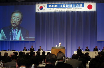 【大阪】韓日経済協会(趙錫來会長)と日韓経済協会(佐々木幹夫会長)の共催による第44回経済人会議が16、17の両日、大阪・中之島の大阪国際会議場で開かれ、両国間の自由貿易協定(FTA)や経済連携協定の早期締結を政府に促す共同声明を採択した。大阪での開催は初めて。
