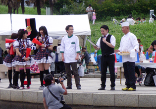 【神奈川】1月に都内で開催された「韓流グルメフェスタ」で人気投票上位に選ばれた韓国料理が、「韓流VS横浜開港祭グルメバトル」(横浜開港祭協議会主催)に参戦した。これは1、2の両日、横浜市内で開催された横浜開港祭2012関連イベント。
